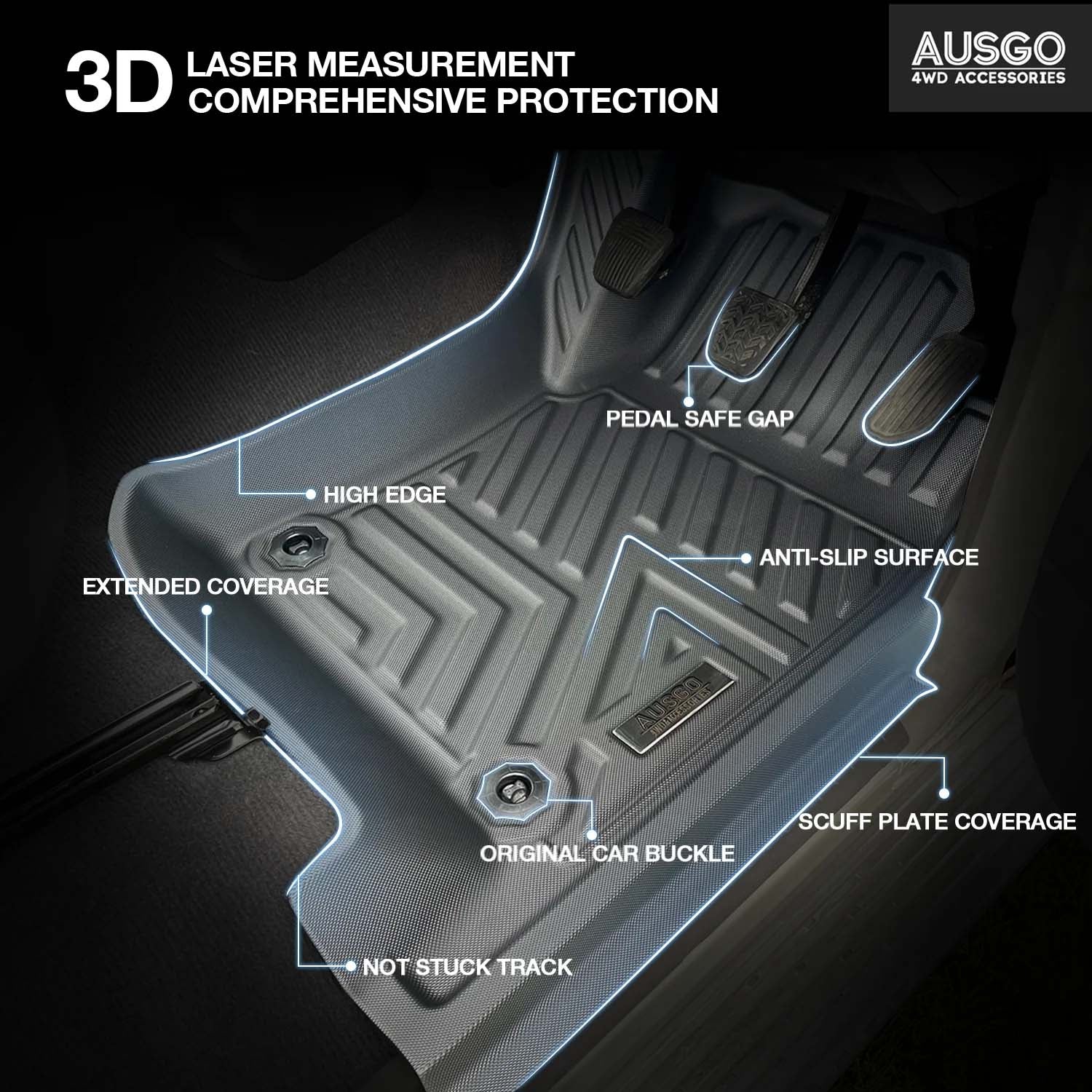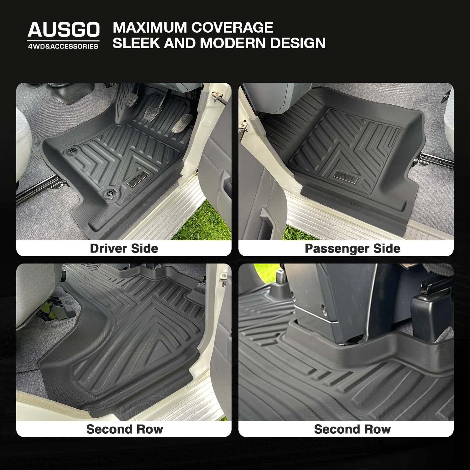AUSGO outperforms OEM (Original Equipment Manufacturer) mats in fit, durability, and coverage. OEMs are the ones you get when you leave the showroom. While OEM mats typically provide basic cover, AUSGO mats are crafted from enhanced Thermoplastic Elastomer (TPE) materials that have superior wear and tear resistance, waterproofing, and longevity. Additionally, they cover more surface area — including the sides and edges of the vehicle’s door sills, under-seat areas, and footwells — which OEMs don’t.